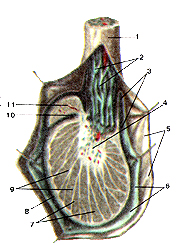 Рис. 228. Пещеристые и губчатое тела (corpora cavernosa et corpu spongiosus) полового члена. Губчатое тело частично отделено от