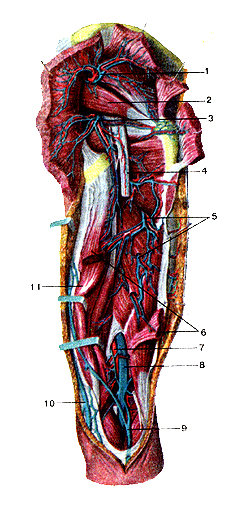 Рис. 329. Поверхностные пены бедра, правого. Вид