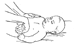 1. И. п. — ребенок лежит на спине. Необходимо произвести поглаживание и ритмичные надавливания на боковые поверхности грудной клетки.