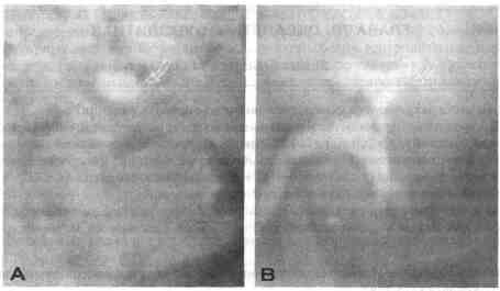 Рис. 79-1. А. На обзорной урограмме в пределах тени почки определяется тень контрастного конкремента, характерная для камней, состоящих из оксалата кальция В. При внутривенной уро-графии камень не отличить от контрастного препарата, который имеет аналогичную рентгенологическую плотность 6. Верно ли, что людям с камнями, состоящими из оксалата кальция, следует отказаться от молочных продуктов? Скорей всего, нет. Несмотря на то, что представляется резонным ограничение молочных продуктов с относительно высоким содержанием кальция у пациентов с предрасположенностью к формированию камней, состоящих из оксалата кальция, для поддержания концепции о влиянии продуктов питания на камнеобразование у таких больных накоплено недостаточно научных данных. У здоровых людей диета с высо ким содержанием кальция может предотвратить развитие таких камней Одним из возможных объяснений этого явления может быть потребность организма в пищевом кальции для связывания оксалата в пищеварительном тракте В результате снижается адсорбция оксалата. 7. Какие рекомендации по диете можно дать для предотвращения камнеобразования у пациентов с камнями, состоящими из оксалата кальция? Наиболее важным является прием жидкости, так как она приводит к повышению объема мочи и снижению концентрации оксалата кальция. Диета с низким содержанием оксалатов более оправдана, чем диета с ограничением кальция Чай, орехи и зеленые листья некоторых овощей богаты оксалатами. По данным различных исследований, полезно ограничение соли и жиров, равно как увеличение потребления продуктов, содержащих клетчатку. В целом правильная диета предотвращает камнеобразование. 8. Когда больного необходимо обследовать на наличие метаболических факторов риска? На этот счет имеются различные мнения, однако несомненно, что каждый больной с рецидивирующими камнями, состоящими из оксалата кальция, должен пройти метаболическое обследование. Появление даже первичного камня у ребенка является показанием к такому обследованию. 9. Что включает метаболическое обследование? • Содержание кальция, фосфата, мочевой кислоты, электролитов и креатинина в сыворотке крови • Содержание кальция, оксалата, мочевой кислоты, цитрата, натрия, а также креатинина (для подтверждения правильности сбора мочи) в суточной моче • Определение рН мочи после голодания 10. Какова цель этих исследований? Наиболее частой причиной рецидивирования камней, состоящих из оксалата кальция, является "идиопатическая гиперкальциурия". Естественным подтверждением этого является превышение уровня экскреции кальция в суточной порции мочи выше 300 мг у мужчин и 250 мг у женщин. Однако некоторые авторы определяют гиперкальциурию как превышение уровня 4 мг Са/кг в суточной порции мочи. Содержание мочевой кислоты также важно при наличии кальциевых камней, так как гиперурикозурия имеет выраженную связь с повышением риска появления камней, состоящих из оксалата кальция. Содержание цитрата важно, так как гипоцитратурия является хорошо известным фактором риска рецидивирования кальциевых камней и также может быть связана с почечным тубулярным ацидозом. Экскреция натрия — важный маркер потребления натрия, а повышение приема соли связано с повышением выделения кальция. 11. Можно ли с помощью какого-нибудь метода лечения предот
